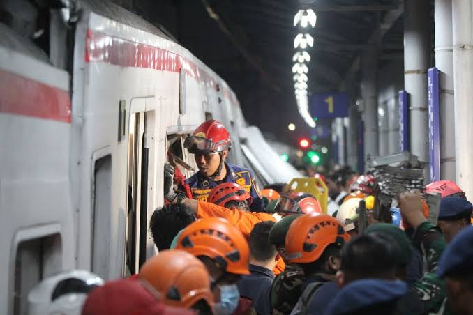 Intime – Proses evakuasi korban kecelakaan antara KA Argo Bromo Anggrek dan KRL Commuter Line di Stasiun Bekasi Timur rampung dilakukan pada Selasa (28/4/2026) pagi.